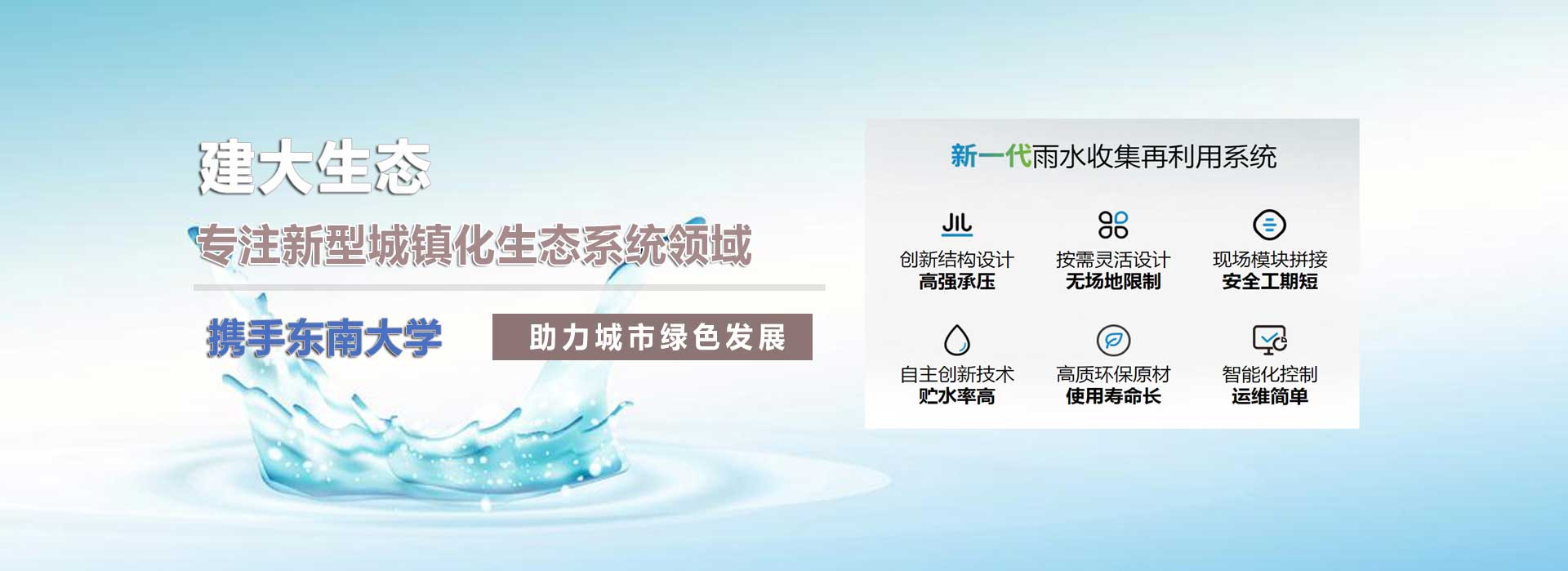 江蘇建大生態(tài)科技有限公司,是一家專注環(huán)保產業(yè)的高新科技企業(yè),主要業(yè)務范圍包含:海綿城市、雨水收集系統(tǒng)、PDS防護虹吸排水系統(tǒng)、純水處理設備、污水處理設備、一體化預制泵站、ALC加氣板等。公司研發(fā)團隊與”東南大學”合作多年,具備前瞻性產業(yè)以及產品的設計與開發(fā)能力。我公司一直以穩(wěn)定至優(yōu)的產品和良好的企業(yè)信譽,取得了廣大客戶的信任。公司所有產品均通過內部質量標準,強大的生產能力和高精的檢測手段,以客戶滿意為中心,不斷追求創(chuàng)新!